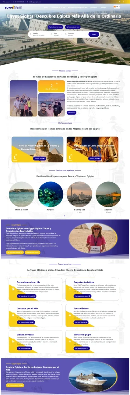 Egypt Sights is a specialized tour operator based in Giza, Egypt, with 30 years of experience in the tourism industry. The agency is particularly known for its team of expert local guides who offer professional services in Spanish, Portuguese, and English, catering to a broad international clientele seeking personalized and culturally rich experiences.