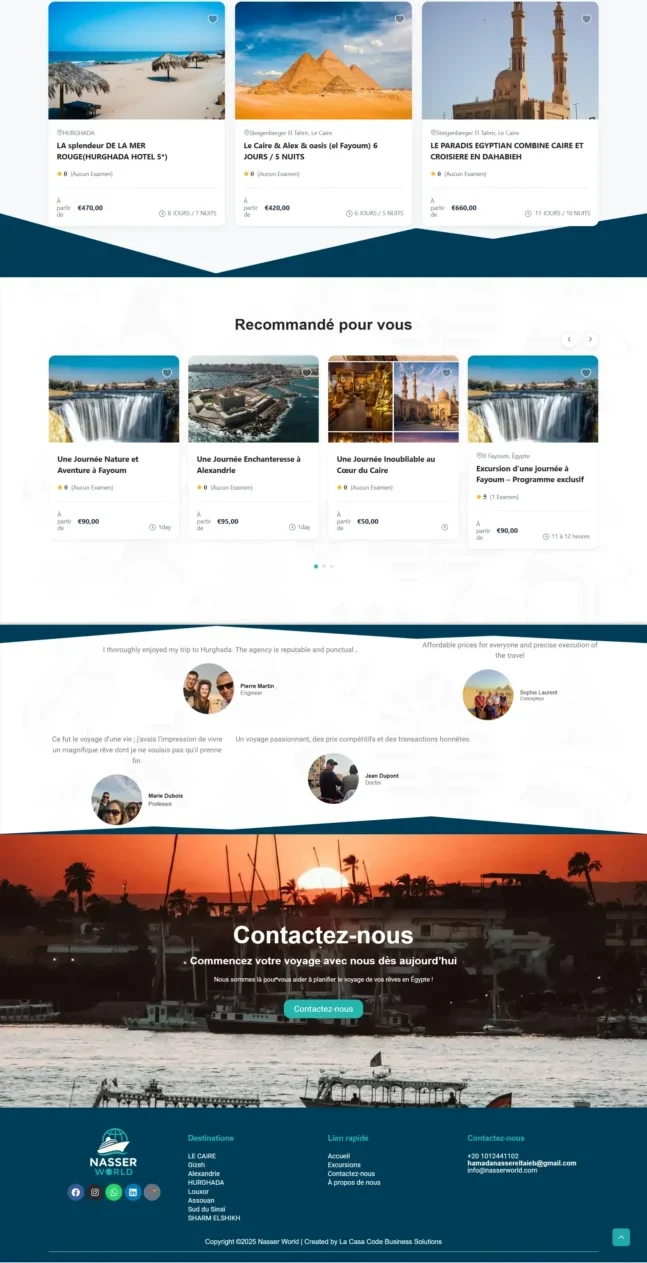 Nasser World Travel Agency is an Egyptian tour operator that focuses on providing authentic and personalized travel experiences. The company highlights its local roots, framing its mission as inviting travelers to see Egypt through the eyes of those who call it home.