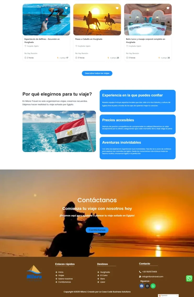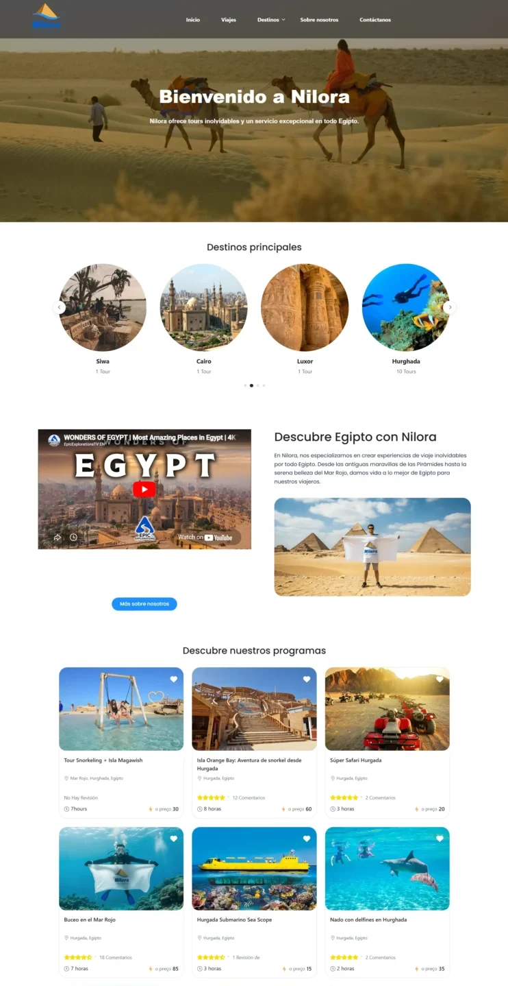 Nilora Travel Agency is an Egyptian tour operator that specializes in creating curated travel experiences across the country’s most iconic destinations. The agency focuses on providing a mix of historical exploration, coastal relaxation, and desert adventure, targeting international travelers with a multilingual platform.