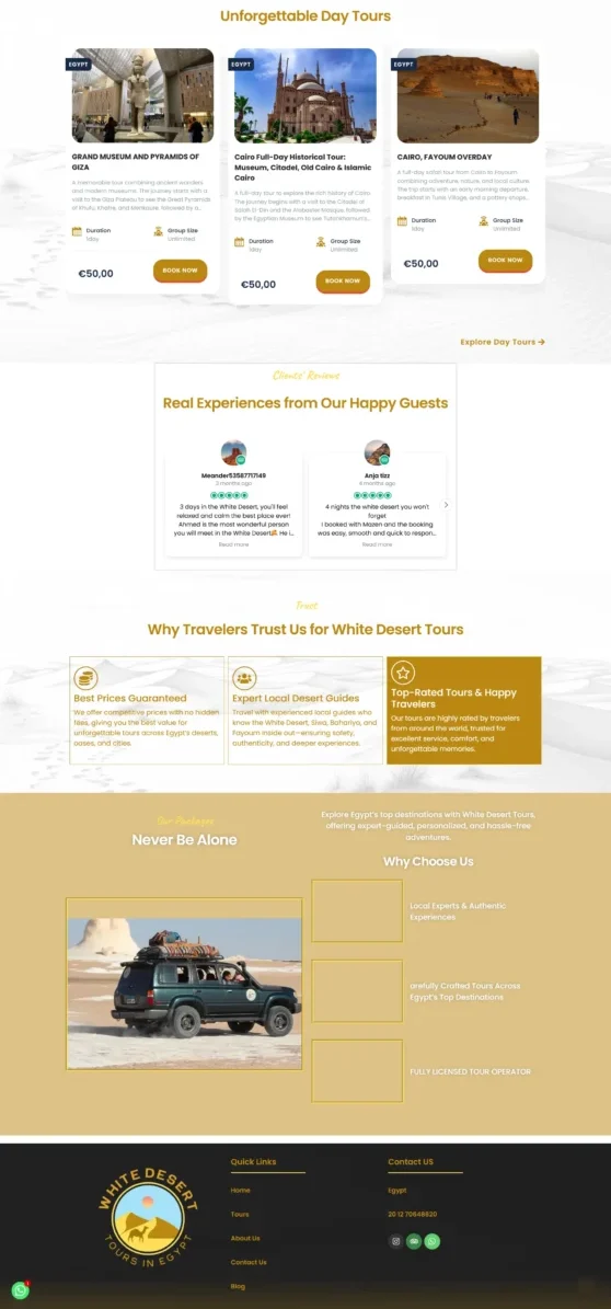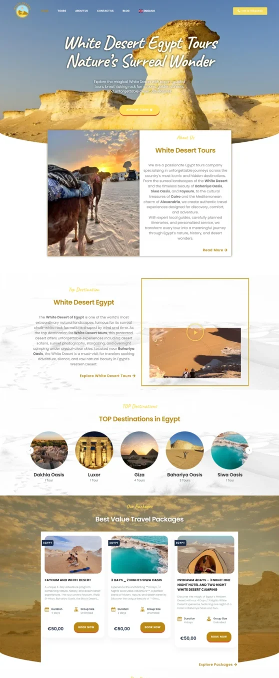 White Desert Tours In Egypt is a specialized travel company focusing on adventure tourism and nature exploration in Egypt’s Western Desert. The agency is particularly known for its expertise in organizing deep-desert safaris to the White Desert National Park and several surrounding oases.