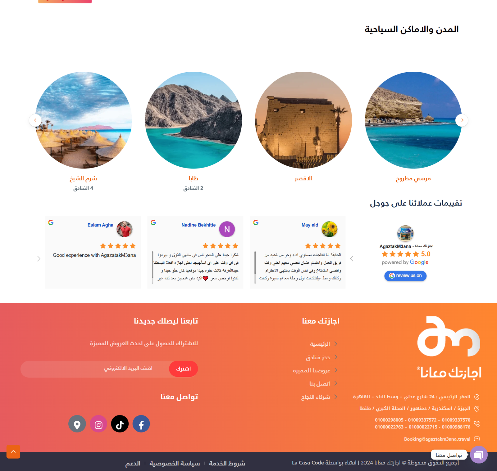 Agaztak M3ana is a modern travel platform developed by La Casa Code to enhance the brand’s digital presence and deliver a smooth, enjoyable browsing experience for travelers. The website showcases a wide selection of domestic travel packages designed to highlight Egypt’s most captivating destinations — from relaxing beach escapes to culturally rich city adventures.