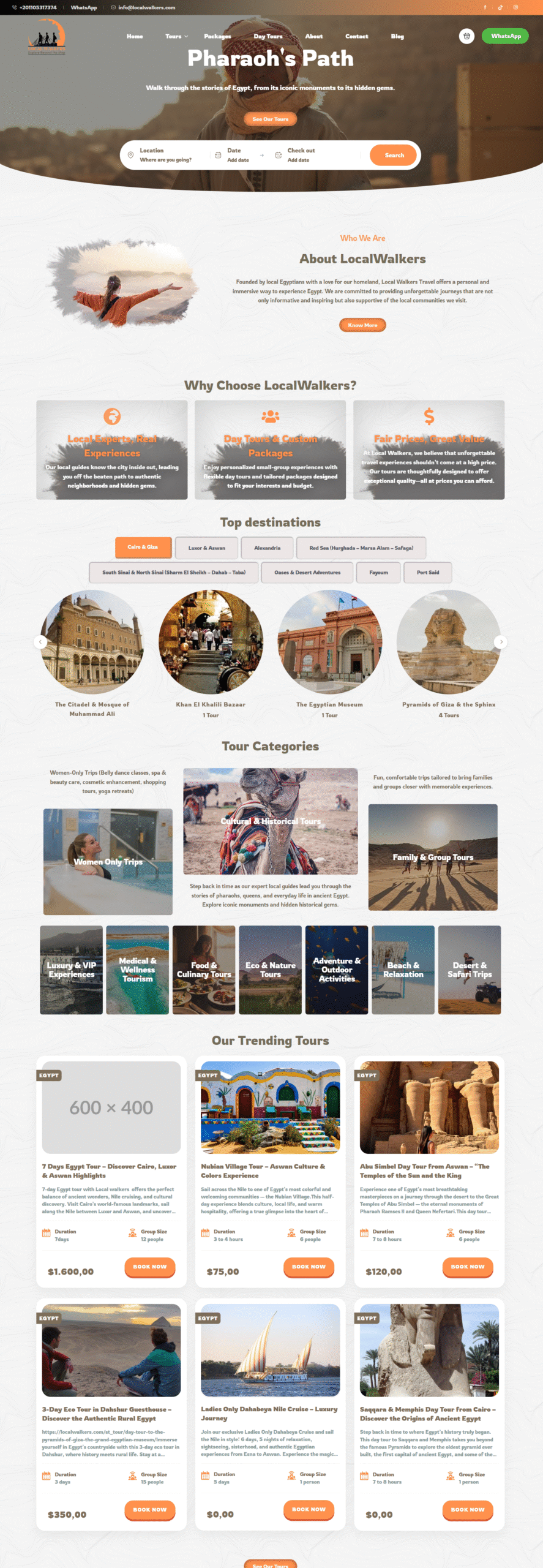 Local Walkers is not merely a travel site; it is a gateway for in-depth exploration of Egyptian culture and history from an insider’s perspective. The company’s work is founded on the philosophy of sustainable tourism, aiming to take travelers away from crowded sites to offer detailed walking tours that explore historic neighborhoods and contemporary cities slowly and deeply.