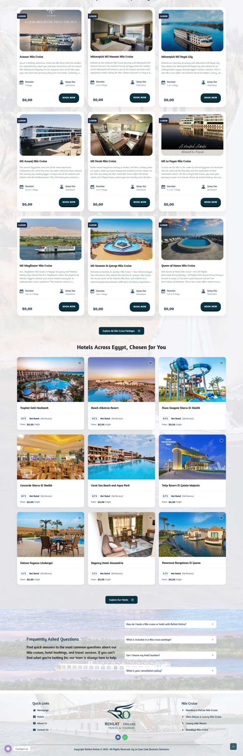 RehlatOnline is a dynamic travel platform developed by La Casa Code to strengthen the brand’s digital presence and offer users a smooth, efficient booking experience. The website showcases a wide range of travel services, including curated domestic and international packages designed to meet the needs of modern travelers.