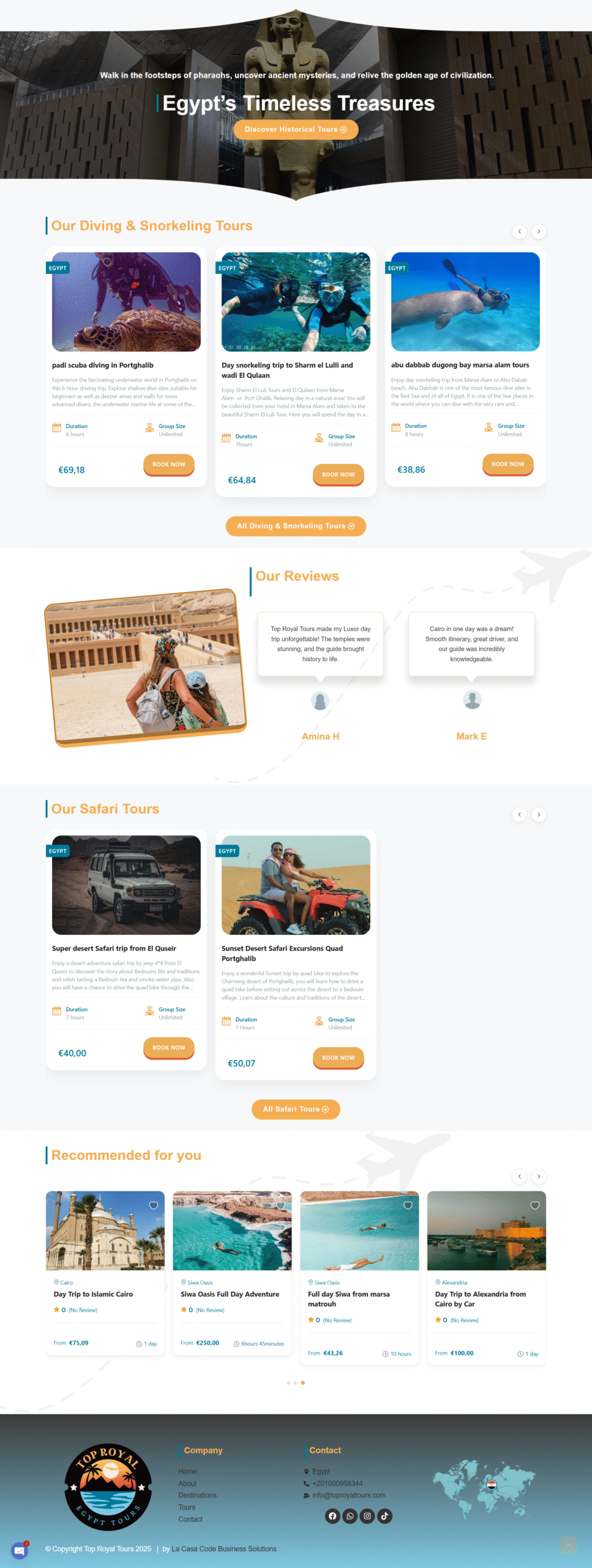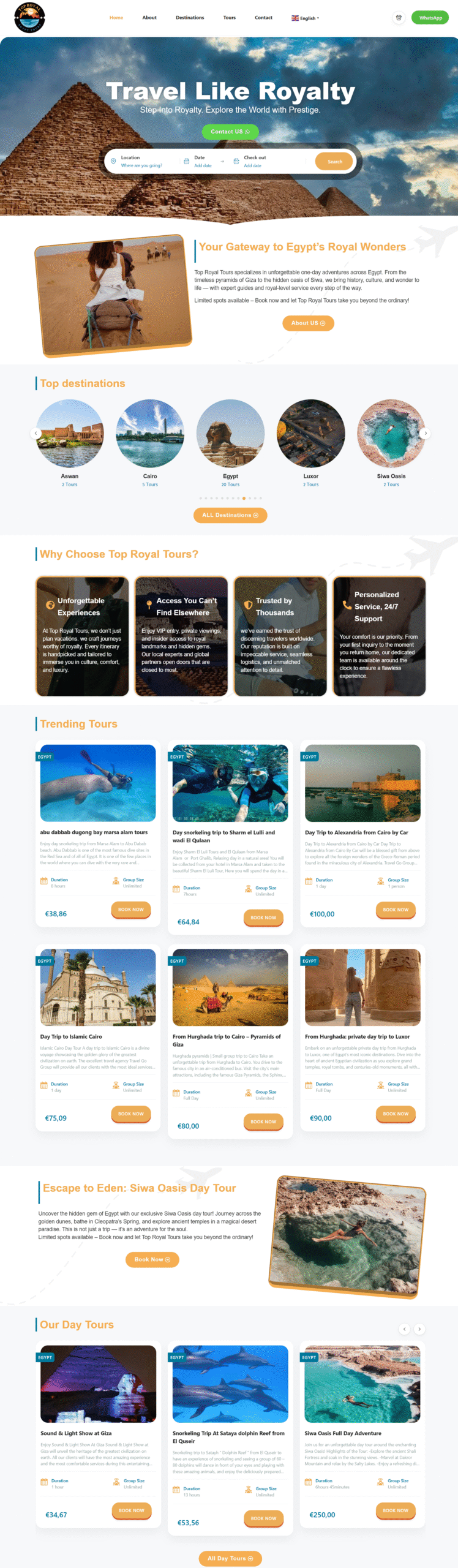 Top Royal Egypt is a luxury travel company focused on providing high-end, tailor-made travel experiences in Egypt, targeting travelers seeking the highest levels of service and excellence. The company’s name reflects its commitment to delivering “royal” tours that emphasize meticulous details and absolute comfort.